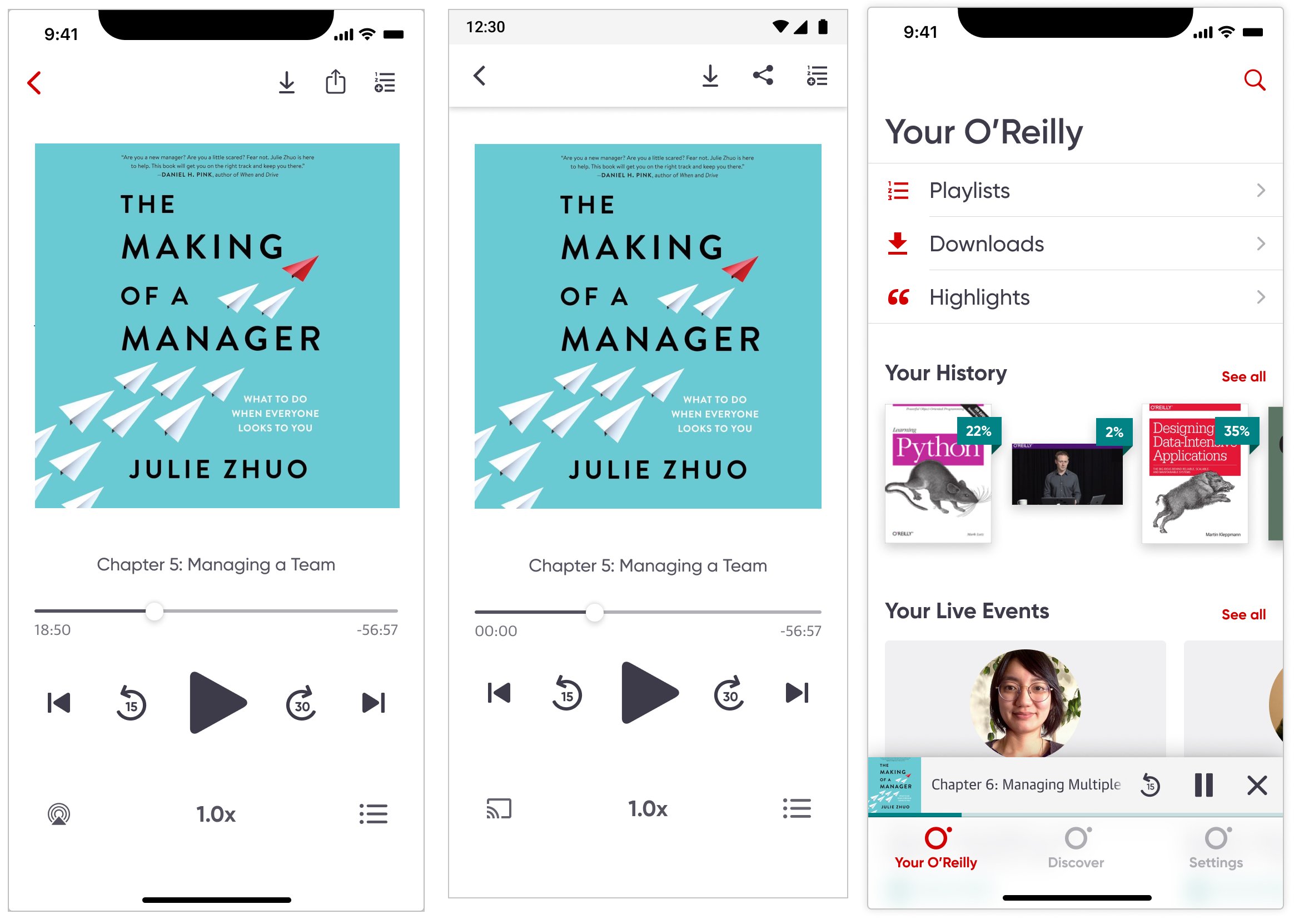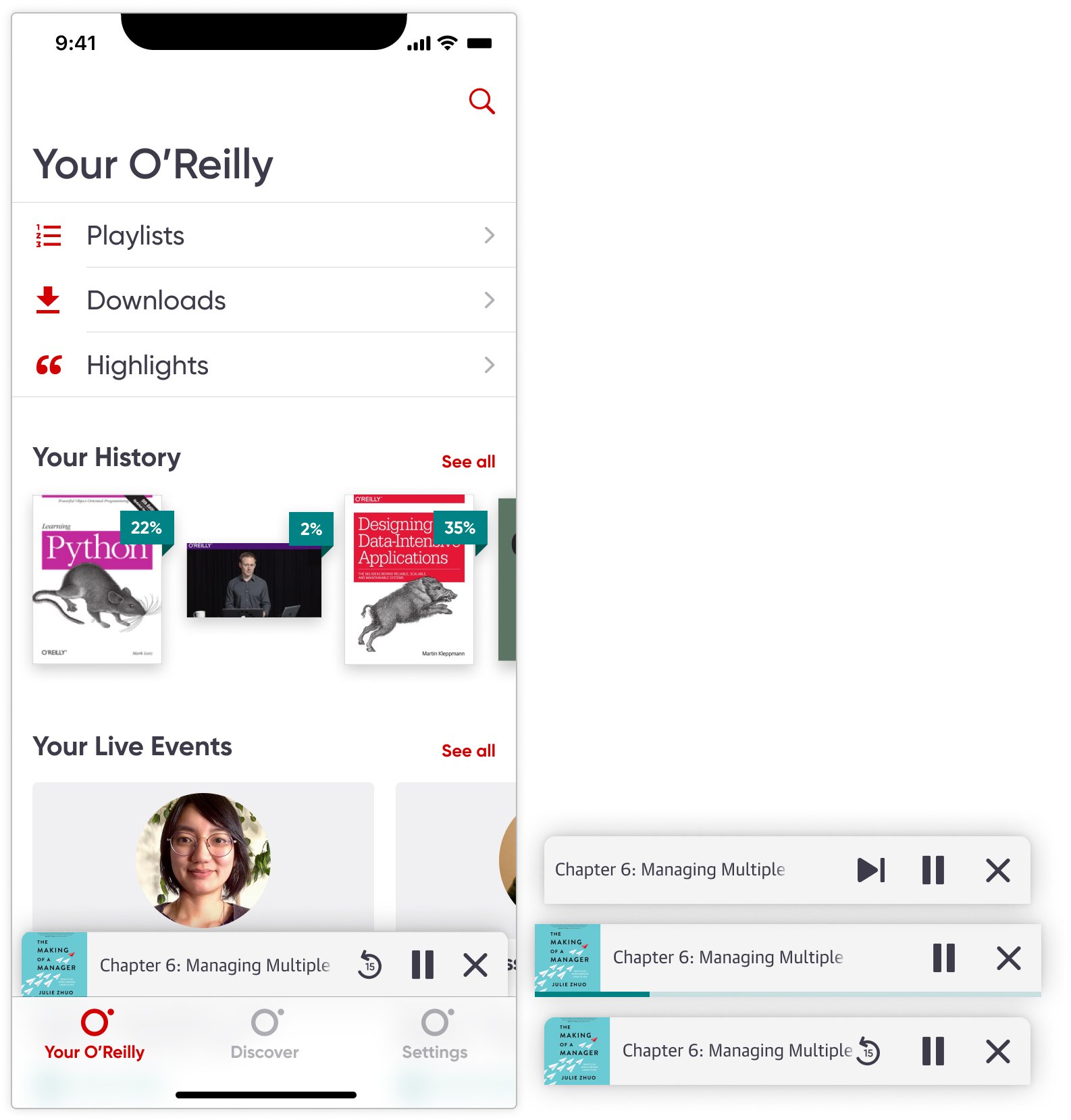 Design a native audio player that transformed O'Reilly's basic playback workaround into a real listening experience, addressing early-session abandonment and enabling the multitasking behavior users expected.